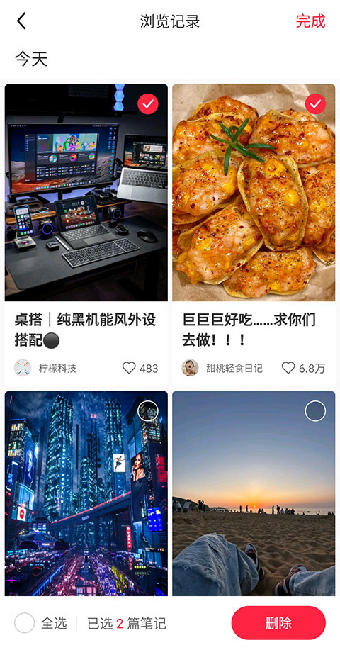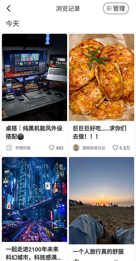 2、点击【浏览记录】,就可以查看自己在近期所查看过的所有笔记。