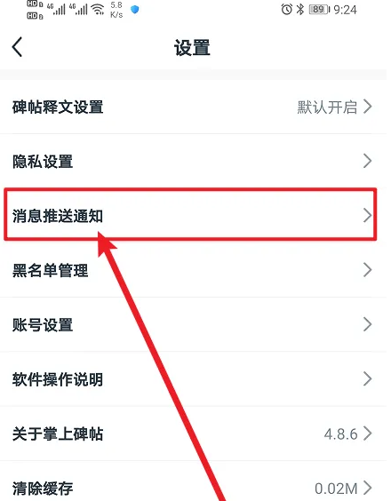 第二步:进入设置页面,点击【消息推送通知】进入,如图所示。