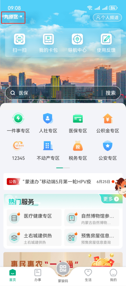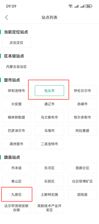 2.在首页左上方选择“九原区”站点。