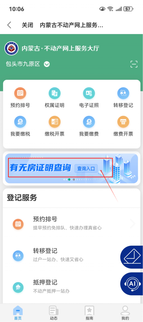 4.进入不动产专区,点击页面中的“有无房证明查询”专题。