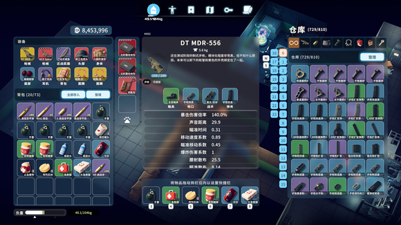 虽然少了个槽位但由于它是冲锋枪,素体的腰射天生就强一点,走腰射后散布7.73,紫弹爆头23.6,对付风暴怪和机器人其实相当强