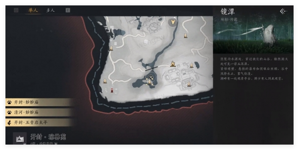 1、走到镜潭,千万不能传送过去,传送过去无法触发任务。