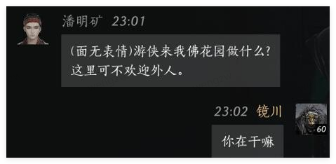 潘明矿:(面无表情)游侠来我佛花园做什么?这里可不欢迎外人。