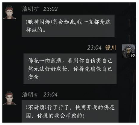 玩家:佛花一向慈悲,看到你伤害自己然无法好好成长,你得先确保自己安全。