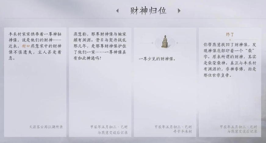 武林录探索-清河万事知-丰禾村·之三【财神归位】