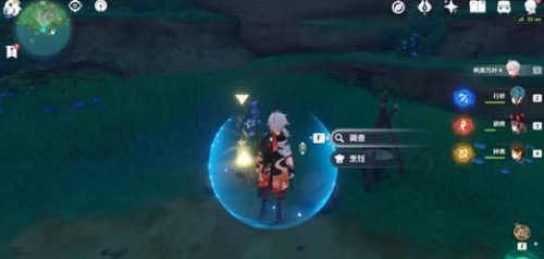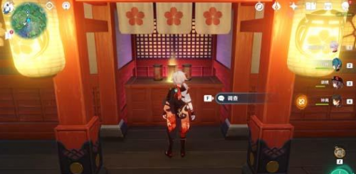 5、击败阿金后返回鸣神大社抽签的位置,在这里会发现玄冬林檎不见了,然后点击调查;