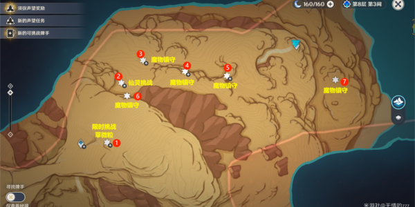 1、首先先来到枫丹与须弥的边界附近,之后去往5号位置;